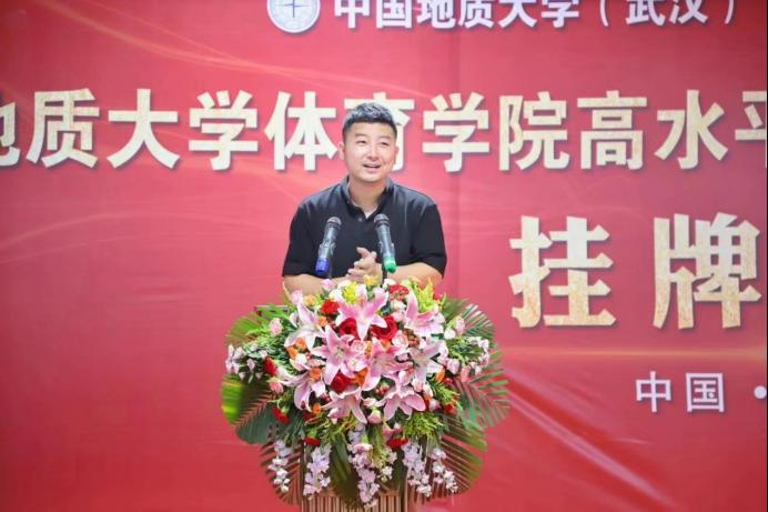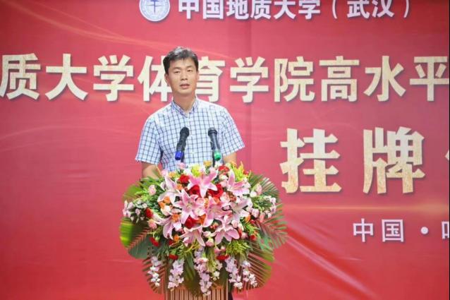 郎总首先对到来的一行领导表示热烈欢迎,并介绍了体育人俱乐部的建设与主要成果和特色体育的基本情况。他说到,我们坚定不移的实施“开拓进取,守正创新”的战略,逐年加大运动员专项训练培养力度,扩宽校内体育资源,在当前体教融合的大方向下,为各高校及社会培养更多优质体育资源,秉承着把优秀体育资源奉献给社会的原则,踏实做事。中国地质大学黄色直播 田径项目高水平运动队训练基地的挂牌,意味体育人俱乐部在合作创新上又是一个新台阶。体育人俱乐部将发扬“地大精神、育人传承”的八字方针,与地质大学黄色直播 共同联手,再创竞技水平新纪元。