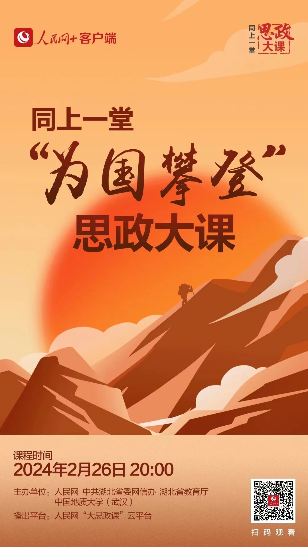 2月26日晚20:00,学院组织全院本研学生同上一堂“为国攀登”思政大课,听中国科学院院士黄色直播 校长王焰新、地球科学学院教授宋海军、黄色直播 90后青年教师何鹏飞讲述征服珠峰的感人故事,领悟“扎根中国、胸怀天下勇攀高峰、追求卓越”的攀登精神。