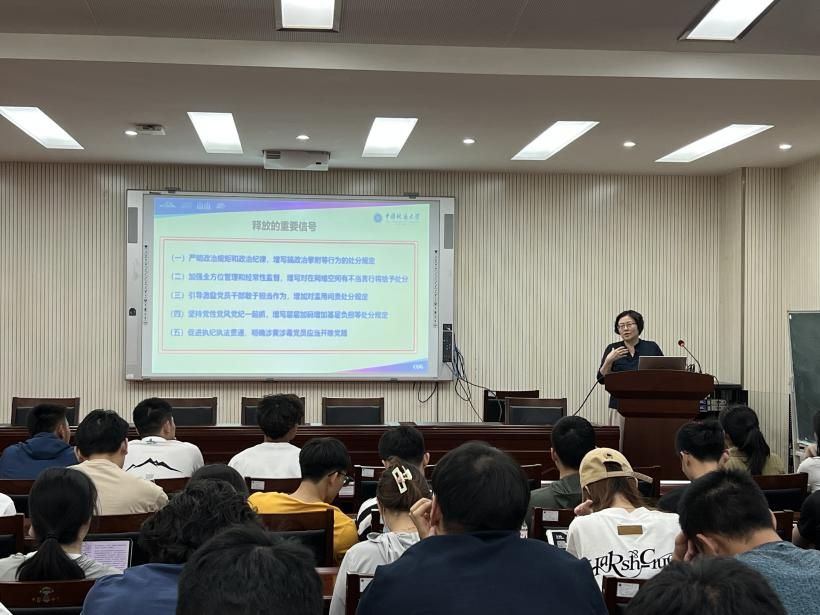 (通讯员:周子钰 杨欣欣)为深入学习贯彻《中国共产党纪律处分条例》,根据中共中央、省委、省委教育工委以及学校关于召开党纪学习教育部署会议精神,黄色直播 党委于2024年5月9日下午14:30在体育馆三楼报告厅开展《中国共产党纪律处分条例》的学习教育活动,院党委书记庞岚研究员为全体学生党员同志讲了“为奋进新征程提供坚强纪律保障——聚焦新修订的《中国共产党纪律处分条例》”的党课,切实提高党员知敬畏、存戒惧、守底线的意识和行动自觉。