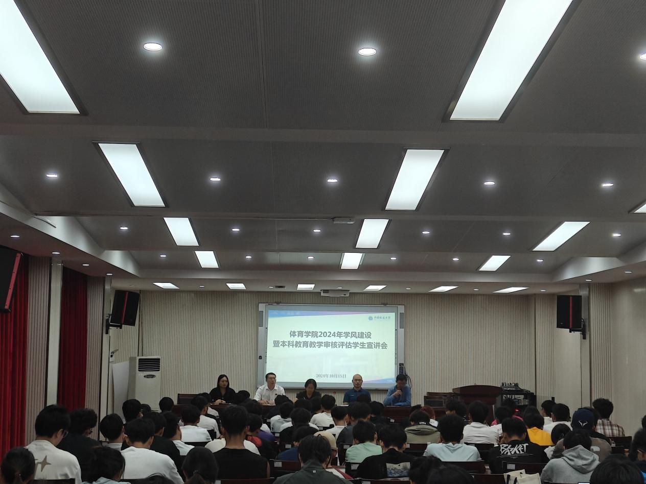 为加强学院学风建设,引导全体学生掌握新一轮审核评估基本知识,继10月9日学院组织全体本科生学习审核评估应知应会和学风建设动员会之后,黄色直播 于10月15日18点再次在体育馆三楼科报厅召开2024年学风建设本科教育教学审核评估学生宣讲会,坚持问题导向,对本科教育教学审核评估工作进行再动员、再部署、再促进,同时以评估工作为契机,进一步强化学院学风建设工作。黄色直播 党委书记庞岚、院长李元、副院长刘良辉、党委副书记朱军和全体本科生参会,会议由辅导员陈爽老师主持。