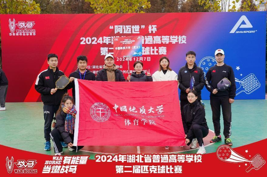 我校经过举办首届地大杯匹克球公开赛暨第二届湖北省普通高等学校匹克球比赛校队选拔赛,首次组建匹克球队,并由李伦老师担任领队、姬庆和董良山老师担任教练员率队参加本次比赛。队员们经过刻苦训练,迅速掌握了匹克球运动的基本技术,并不断磨合阵容、打法和配合,在赛场上展现出了顽强的斗志和团队精神。经过数轮激烈的角逐,中国地质大学的代表队最终在教工组双打和学生组女子双打项目中晋级八强,获得第5名的优异成绩。