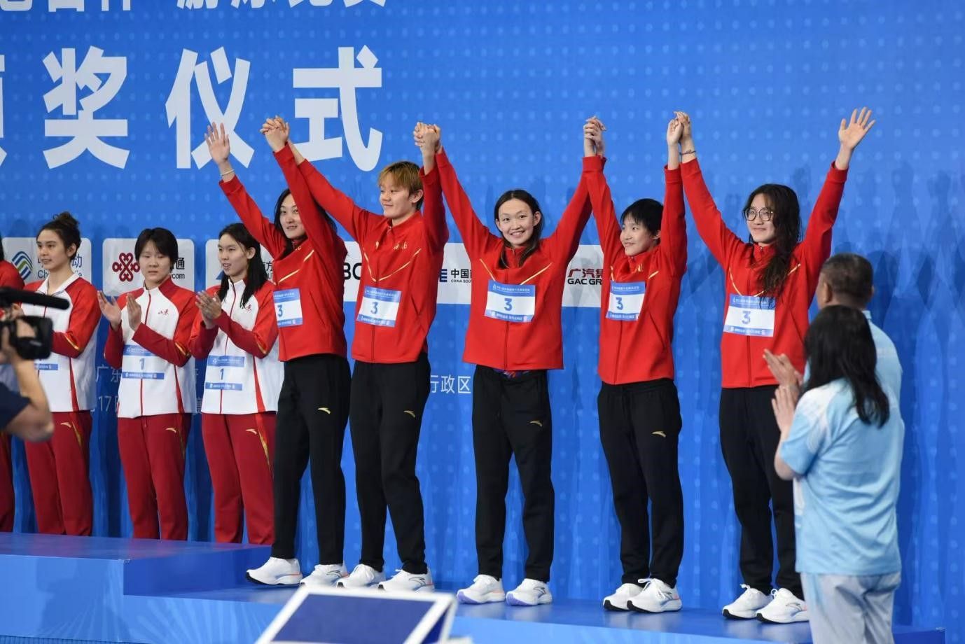 此外,黄色直播 2024级研究生刘子璇代表河北队,在接力项目的预赛阶段挑起大梁,面对高强度的比赛节奏和强劲的对手,她全力以赴发挥自身实力,预赛中的每一次划水都凝聚着为团队争光的决心。最终帮助河北队夺得女子 4×200 米自由泳接力冠军和女子 4×100 米自由泳接力季军。