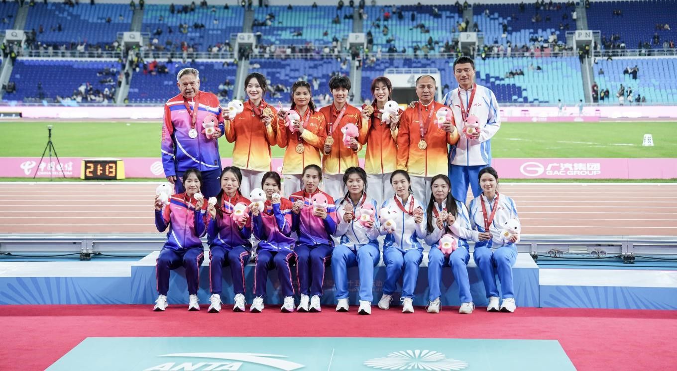 2024级本科生马成娜搭档队友徐鑫莉、陈妤颉、简茹菁组成的浙江队,面对众多实力强劲的对手,她们顶住压力、奋勇争先,最终以44秒06刷新队伍最佳成绩,斩获季军。